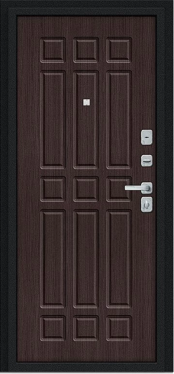 Надежная входная Дверь Браво Мило МФ/BChrome Букле черное/Букле черное/Wenge Melinga премиум класса по цене 31 819 руб. Большая толщина стали защитит от проникновения в ваш дом, квартиру или коттедж. Используется очень качественная фурнитура: замки, цилиндры, ручки, защелки. Покрытие и отделка двери изготовлено под внимательным контролем производителя. Дверь имеет долгий срок службы и гарантию.