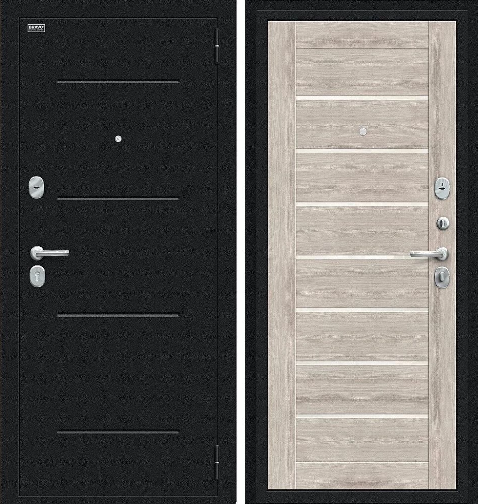 Надежная входная Дверь Браво Техно Букле черное/Cappuccino Veralinga премиум класса по цене 31 469 руб. Большая толщина стали защитит от проникновения в ваш дом, квартиру или коттедж. Используется очень качественная фурнитура: замки, цилиндры, ручки, защелки. Покрытие и отделка двери изготовлено под внимательным контролем производителя. Дверь имеет долгий срок службы и гарантию.