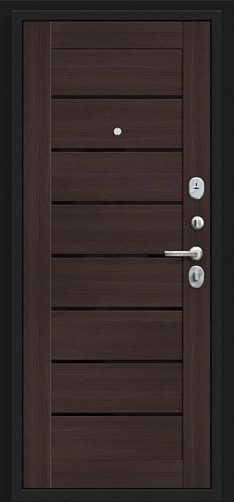 Надежная входная Дверь Браво Техно Букле черное/Wenge Veralinga премиум класса по цене 31 469 руб. Большая толщина стали защитит от проникновения в ваш дом, квартиру или коттедж. Используется очень качественная фурнитура: замки, цилиндры, ручки, защелки. Покрытие и отделка двери изготовлено под внимательным контролем производителя. Дверь имеет долгий срок службы и гарантию.
