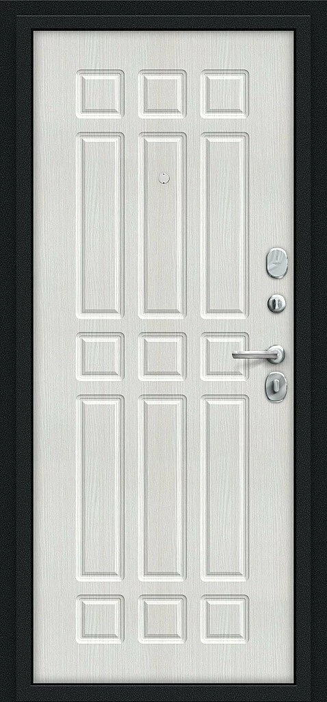 Надежная входная Входная дверь Мило Букле черное/Bianco Veralinga BR4301 премиум класса по цене 30 341 руб. Большая толщина стали защитит от проникновения в ваш дом, квартиру или коттедж. Используется очень качественная фурнитура: замки, цилиндры, ручки, защелки. Покрытие и отделка двери изготовлено под внимательным контролем производителя. Дверь имеет долгий срок службы и гарантию.