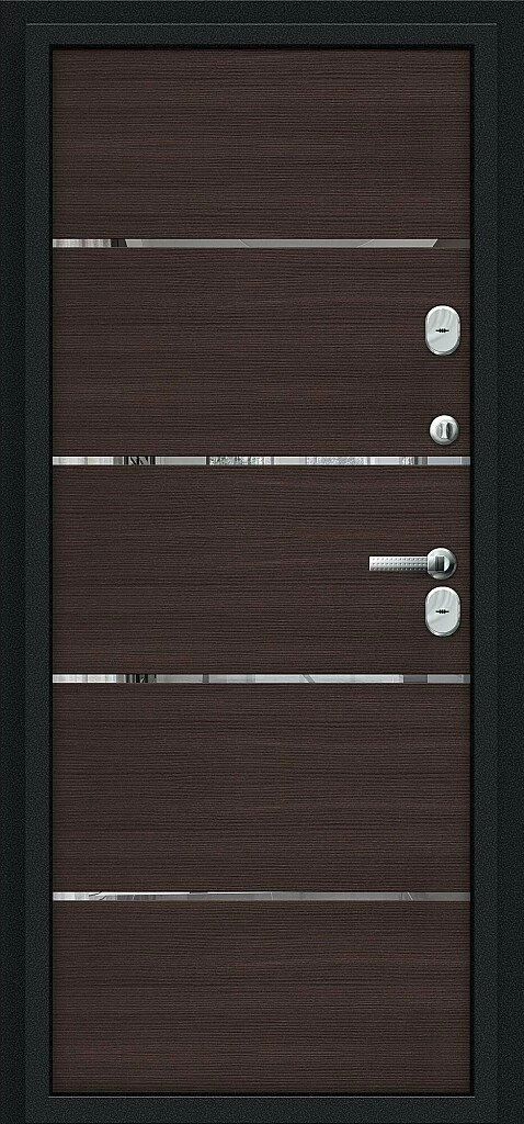 Надежная входная Входная дверь Thermo Лайн Букле черное/Wenge Veralinga BR4579 премиум класса по цене 48 760 руб. Большая толщина стали защитит от проникновения в ваш дом, квартиру или коттедж. Используется очень качественная фурнитура: замки, цилиндры, ручки, защелки. Покрытие и отделка двери изготовлено под внимательным контролем производителя. Дверь имеет долгий срок службы и гарантию.