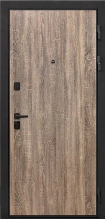 Дизайнерская входная Дверь Интекрон Профит Black (фурнитура черная) Дуб турин класса Люкс с несколькими листами стали, звукоизоляцией и теплоизоляцией. Утепленный короб и полотно защитят от сквозняков и шумов. Модель не только надежная, комфортная, защищенная и высочайшего качества, но и очень красивая! Будет отлично сочетаться с интерьером дома, квартиры или офиса. Сейчас действует выгодное предложение по цене: 77 119 руб.