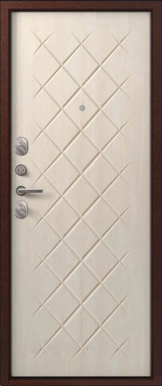 Надежная входная Дверь V-02 медь антик - седой дуб премиум класса по цене 36 969 руб. Большая толщина стали защитит от проникновения в ваш дом, квартиру или коттедж. Используется очень качественная фурнитура: замки, цилиндры, ручки, защелки. Покрытие и отделка двери изготовлено под внимательным контролем производителя. Дверь имеет долгий срок службы и гарантию.